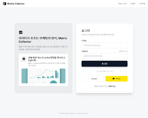 - 제품 정의: Metric Collector는 광고 대행사의 치명적인 리스크인 ‘예산 초과 지출(Overspending)‘을 원천 봉쇄하고, 매일 반복되는 수동 보고서 작성을 자동화하는 통합 광고 성과 감사 및 모니터링 솔루션입니다.