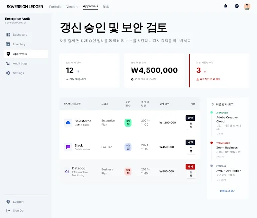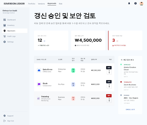 - 단순 지출 관리를 넘어, 각 갱신 시점마다 작성된 승인 사유와 보안 검토 내역을 데이터베이스화하여 연간 IT 감사 시 즉시 제출 가능한 증적 리포트를 자동 생성합니다.