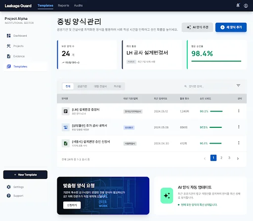 /templates: 공공기관 및 대형 건설사별 과거 승인 이력이 반영된 증빙 양식 관리
